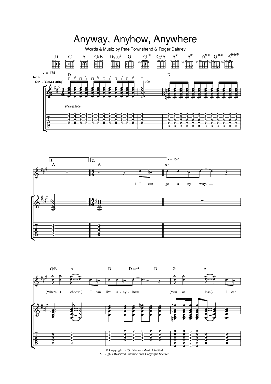 "Anyway, Anyhow, Anywhere" Sheet Music by The Who