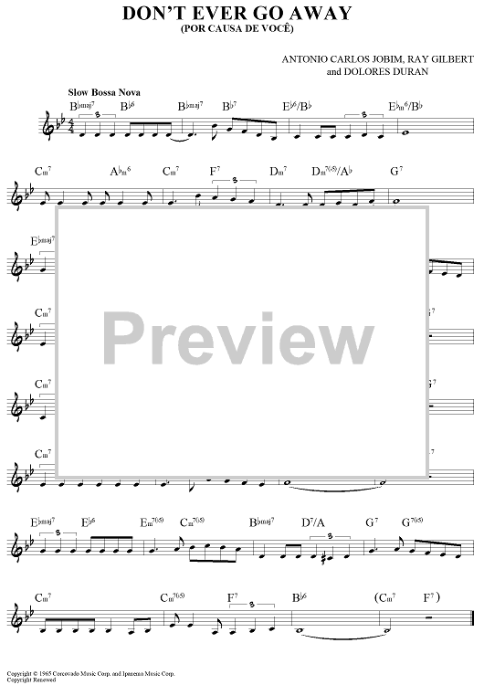 "Don't Ever Go Away (Por Causa De Voce)" Sheet Music by Antonio Carlos Jobim