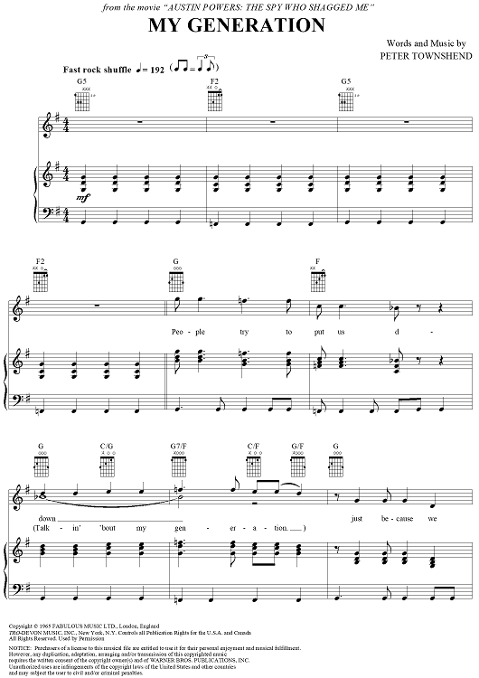 "My Generation" Sheet Music by The Who