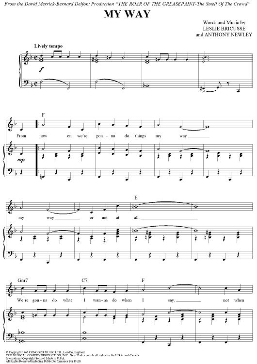 Digital Sheet Music for My Way by Leslie Bricusse, Anthony Newley scored for Piano/Vocal/Chords; id:430217