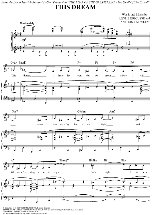 Digital Sheet Music for This Dream by Leslie Bricusse, Anthony Newley scored for Piano/Vocal/Chords; id:430223