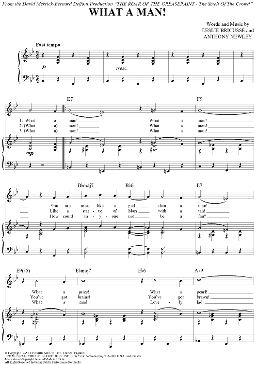 Digital Sheet Music for What A Man! by Leslie Bricusse, Anthony Newley scored for Piano/Vocal/Chords; id:430224