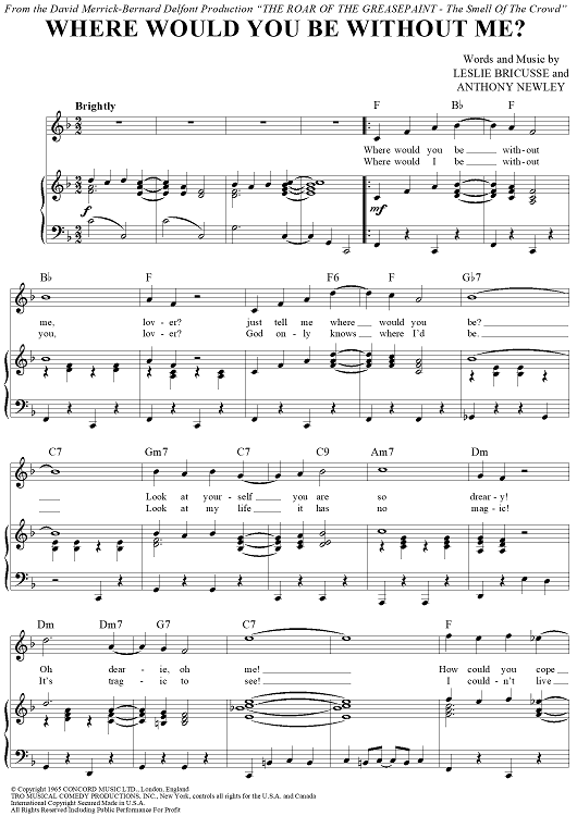 Digital Sheet Music for Where Would You Be Without Me? by Leslie Bricusse, Anthony Newley scored for Piano/Vocal/Chords; id:430229