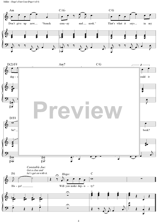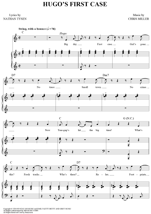 Digital Sheet Music for Hugo's First Case by Chris Miller, Nathan Tysen scored for Piano/Vocal/Chords; id:463404