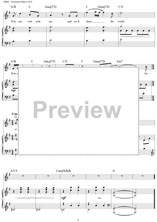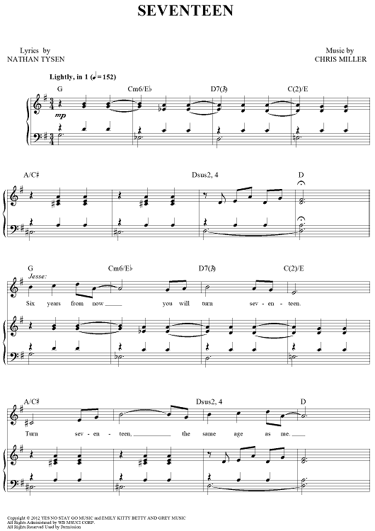 Digital Sheet Music for Seventeen by Chris Miller, Nathan Tysen scored for Piano/Vocal/Chords; id:463894