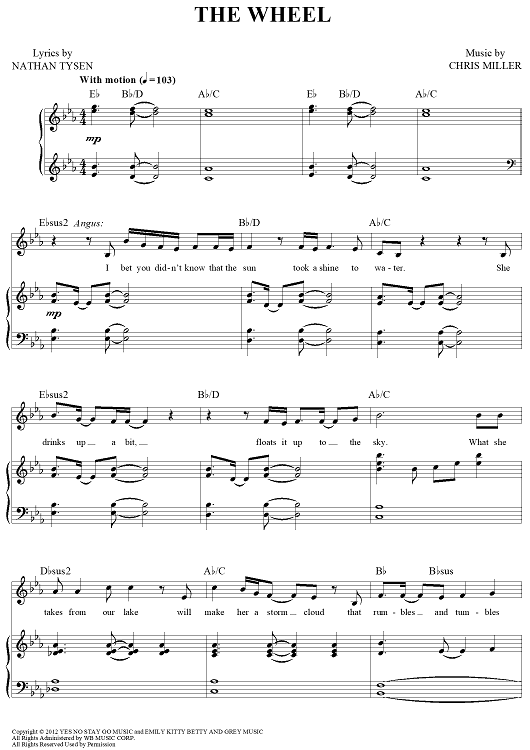 Digital Sheet Music for The Wheel by Chris Miller, Nathan Tysen scored for Piano/Vocal/Chords; id:463895