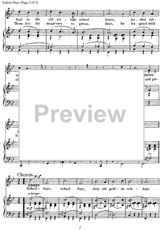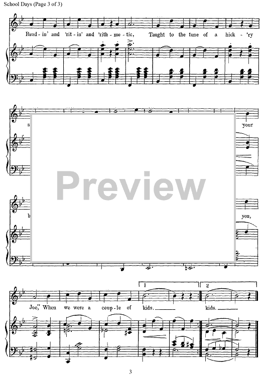 Digital Sheet Music for School Days (When We Were a Couple of Kids) by Gus Edwards, Will D. Cobb, M. Kalua scored for Piano/Vocal/Ukulele; id:423231