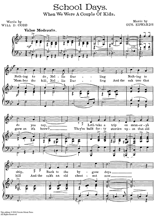 "School Days (When We Were a Couple of Kids)" Sheet Music by Gus Edwards