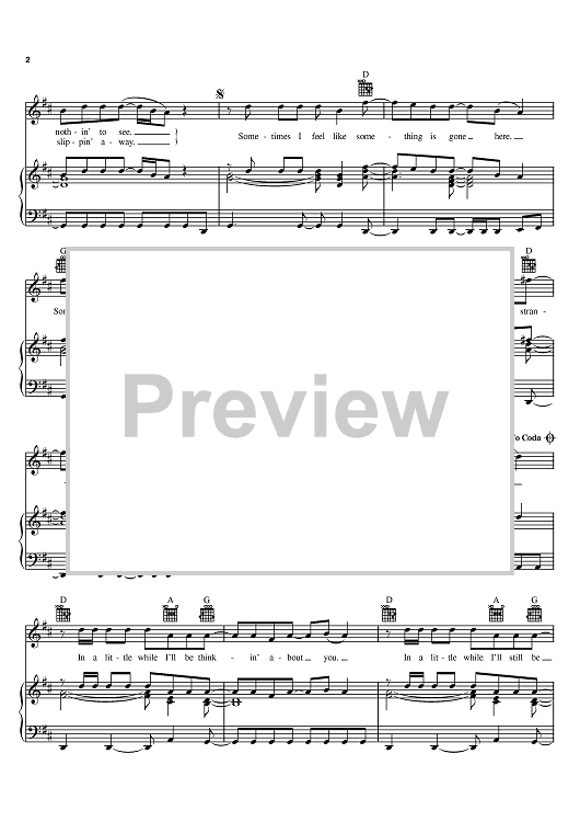 Digital Sheet Music for In A Little While by Matthew Shafer, Uncle Kracker, Michael Bradford scored for Piano/Vocal/Chords; id:370314