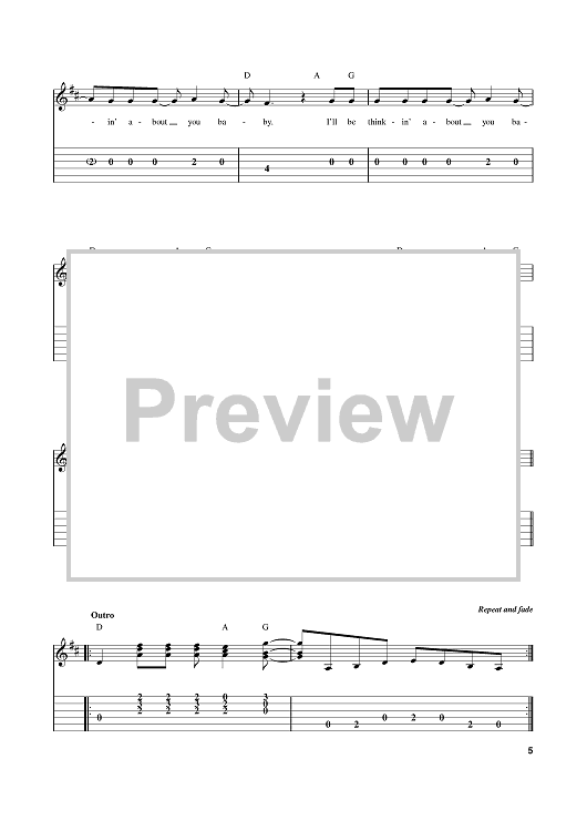 Digital Sheet Music for In A Little While by Matthew Shafer, Uncle Kracker, Michael Bradford scored for Easy Guitar Tab; id:371493