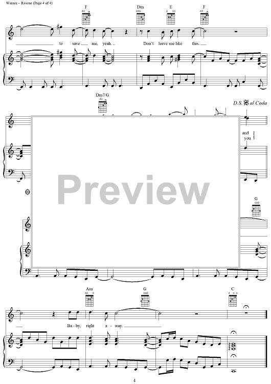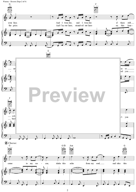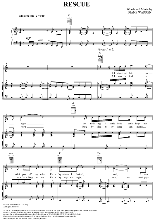 Digital Sheet Music for Rescue by Diane Warren, Uncle Kracker scored for Piano/Vocal/Chords; id:307442