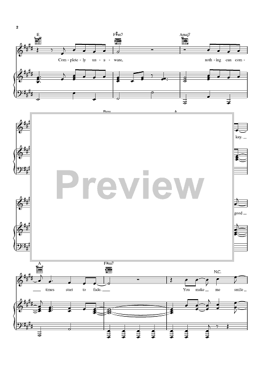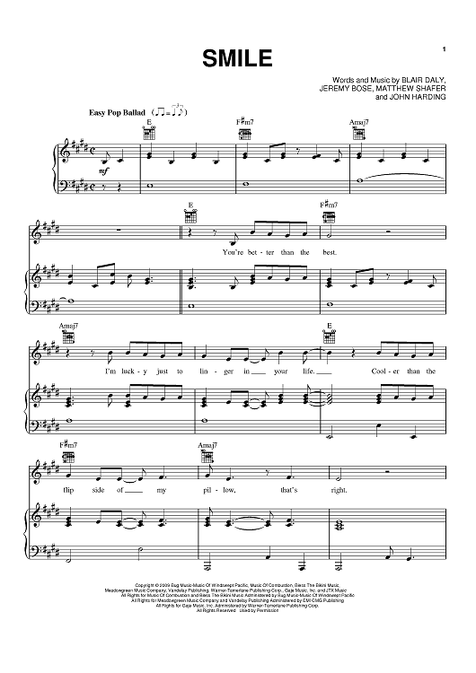 Digital Sheet Music for Smile by Matthew Shafer, Blair Daly, Uncle Kracker, J.T. Harding, Jeremy Bose scored for Piano/Vocal/Chords; id:414923