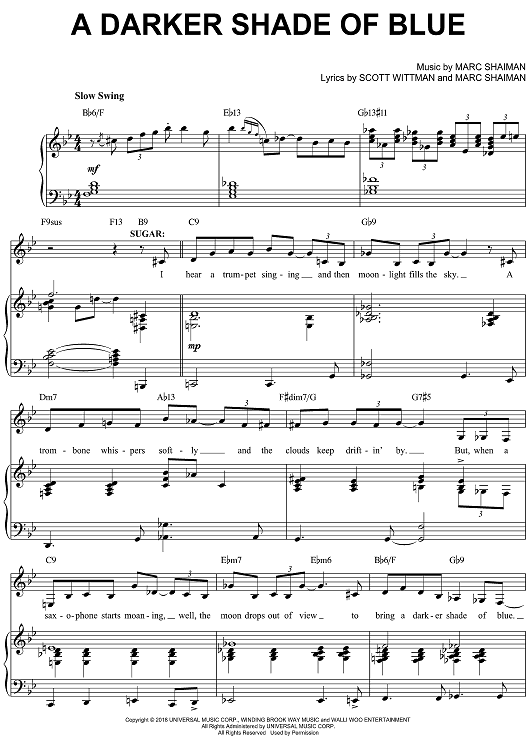 Digital Sheet Music for A Darker Shade of Blue by Marc Shaiman, Scott Wittman scored for Piano/Vocal/Chords; id:500301