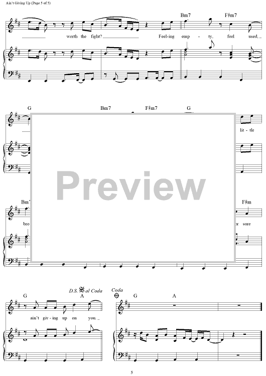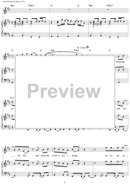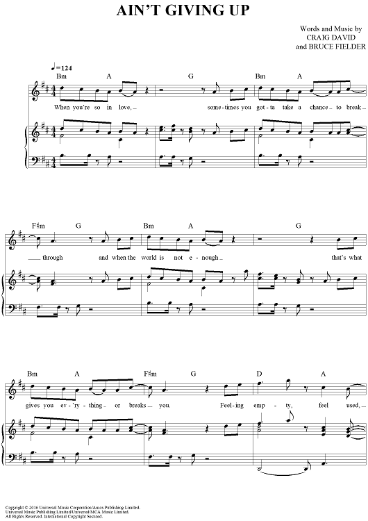 Digital Sheet Music for Ain't Giving Up by Craig David, Bruce Fielder, Sigala scored for Piano/Vocal/Chords; id:462621