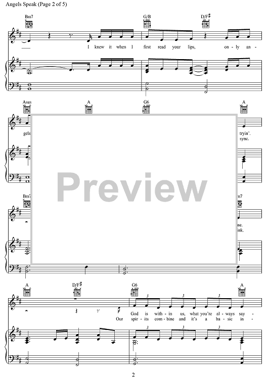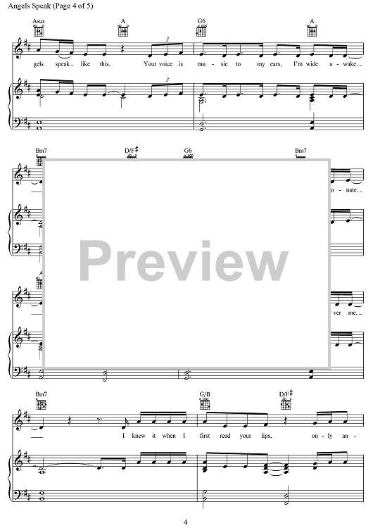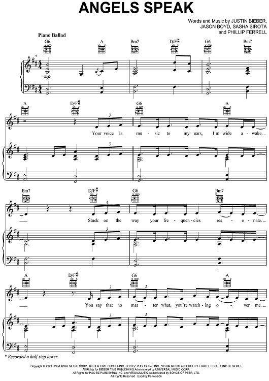 Digital Sheet Music for Angels Speak by Jason Boyd, Justin Bieber, Sasha Sirota, Phillip Ferrell scored for Piano/Vocal/Chords; id:469913