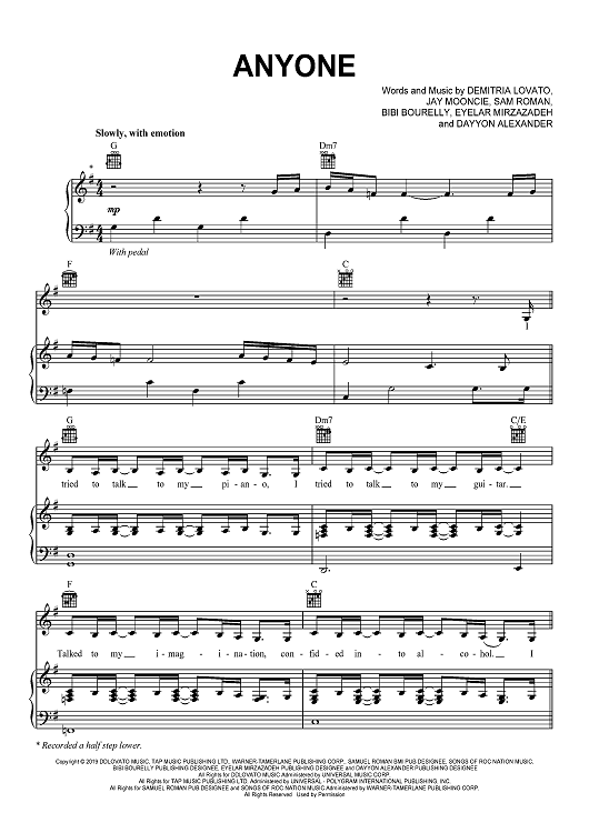 Digital Sheet Music for Anyone by Demi Lovato, Bibi Bourelly, Samuel Roman, Jay Mooncie, Eyelar Mirzazadeh, Dayyon Alexander scored for Piano/Vocal/Chords; id:467968