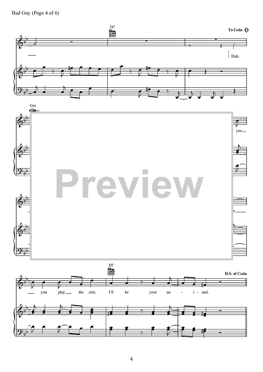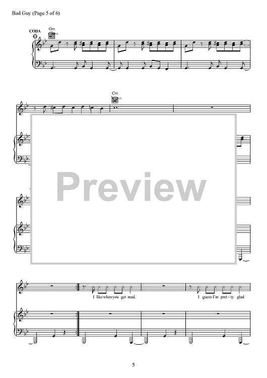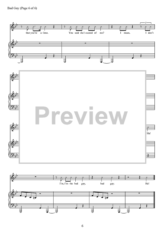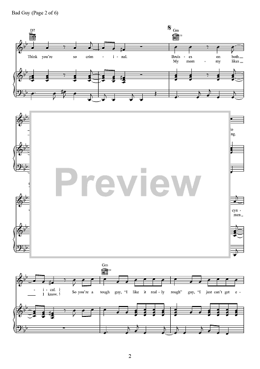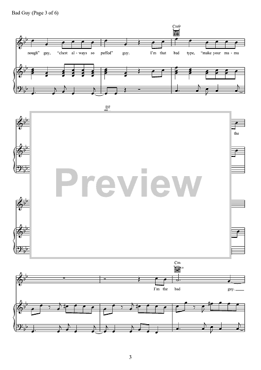 Digital Sheet Music for Bad Guy by Billie Eilish, Finneas O'Connell scored for Piano/Vocal/Chords; id:467494