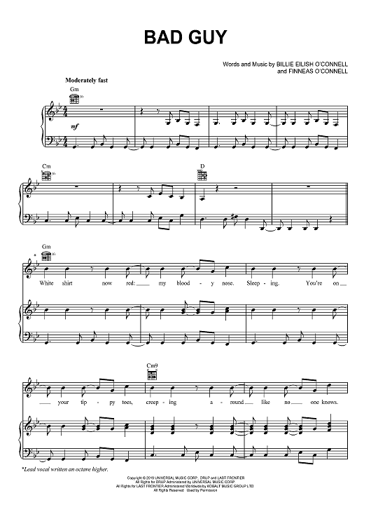 "Bad Guy" Sheet Music by Billie Eilish