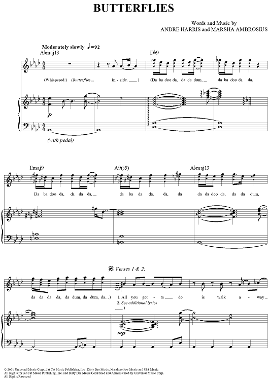 Digital Sheet Music for Butterflies by Michael Jackson, Andre Harris, Marsha Angelique Ambrosius scored for Piano/Vocal/Chords; id:288923