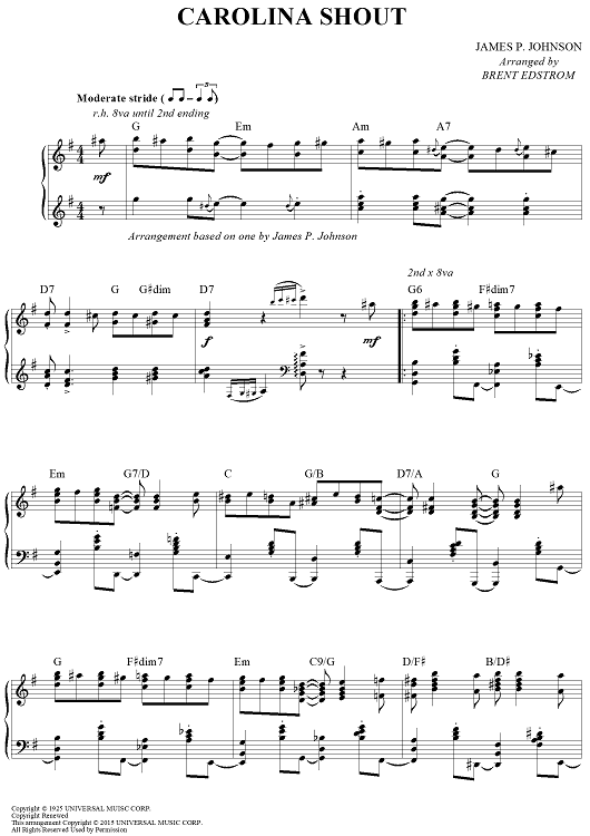 Digital Sheet Music for Carolina Shout by James P. Johnson, Brent Edstrom scored for Piano Solo; id:458933