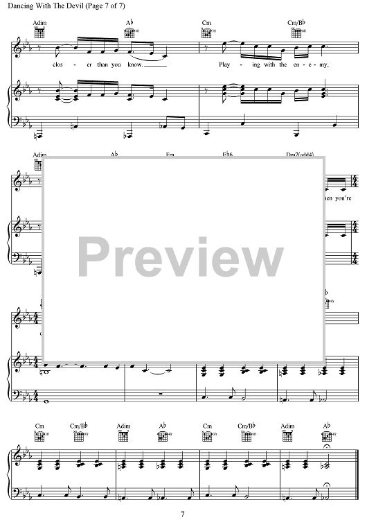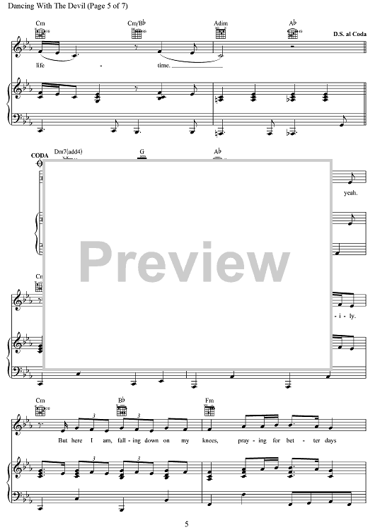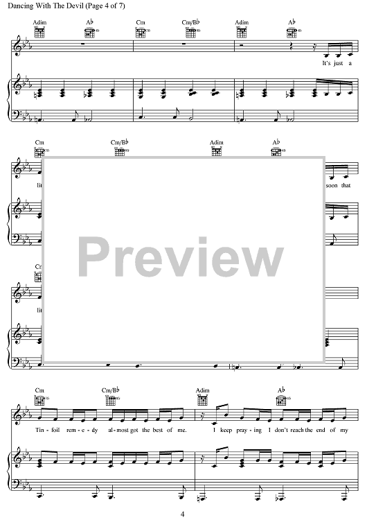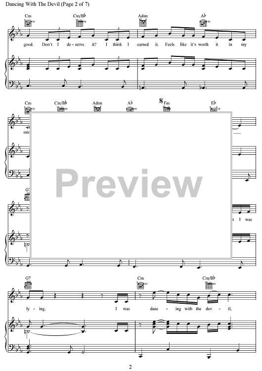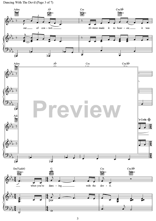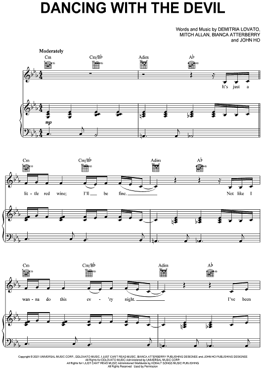 Digital Sheet Music for Dancing With The Devil by Mitch Allan, Demi Lovato, Bianca Atterberry, John Ho scored for Piano/Vocal/Chords; id:469176