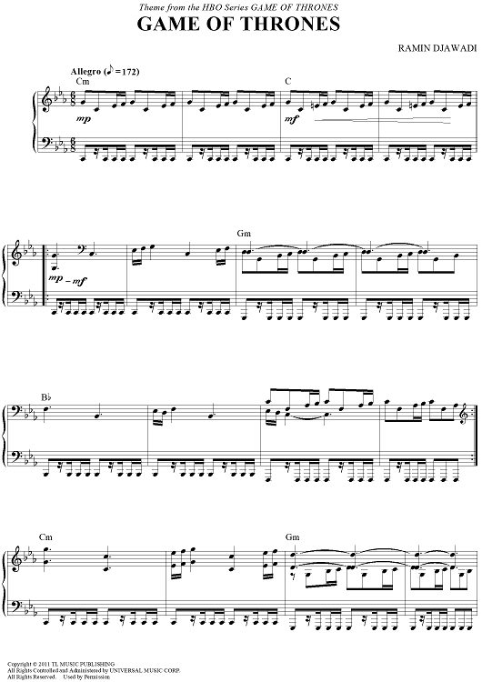 "Game of Thrones" Sheet Music by Ramin Djawadi