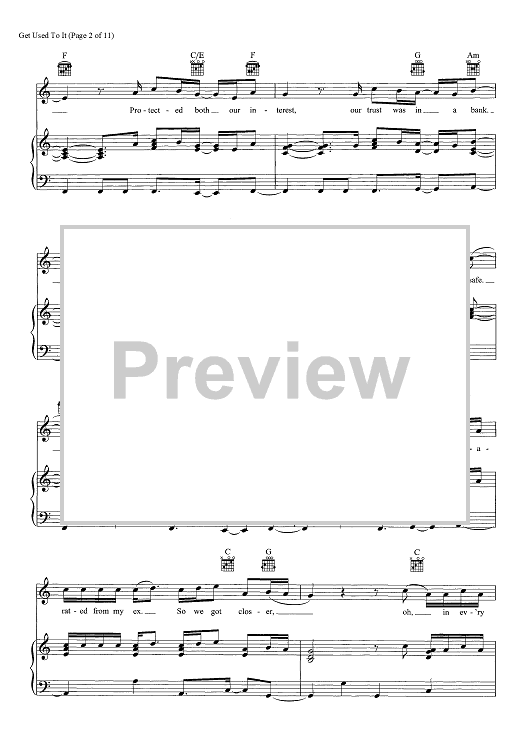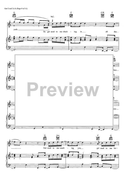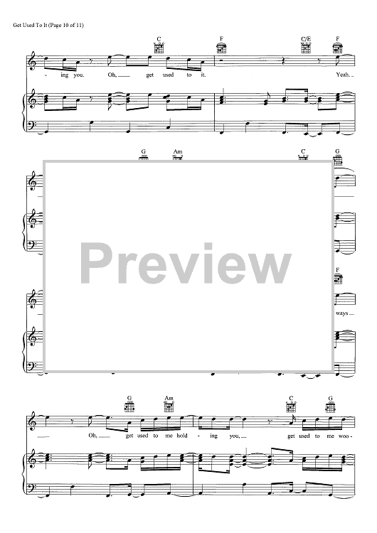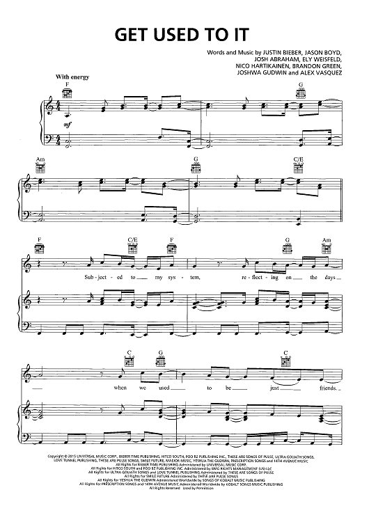 Digital Sheet Music for Get Used To It by Jason Boyd, Justin Bieber, Joshua Gudwin, Josh Abraham, Alex Vasquez, Brandon Green, Nico Hartikainen, WRONG Weisfeld scored for Piano/Vocal/Chords; id:458703