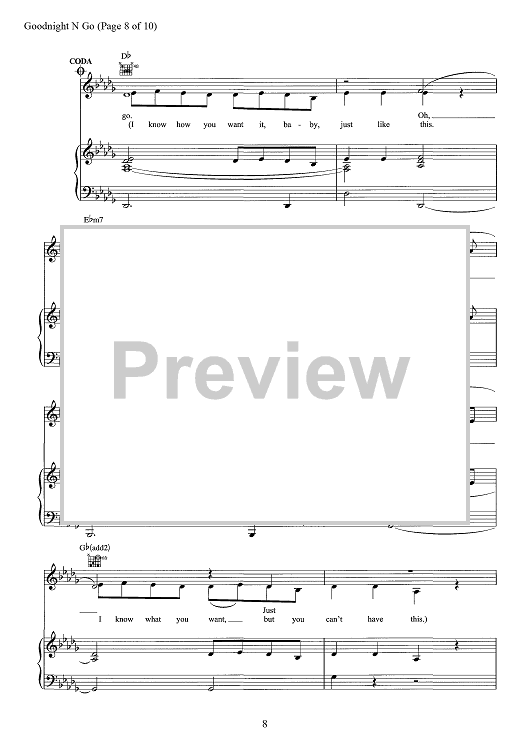 Digital Sheet Music for Goodnight N Go by Michael Foster, Ariana Grande, Victoria McCants, Tommy Brown, Charles Anderson, Imogen Heap scored for Piano/Vocal/Chords; id:467212
