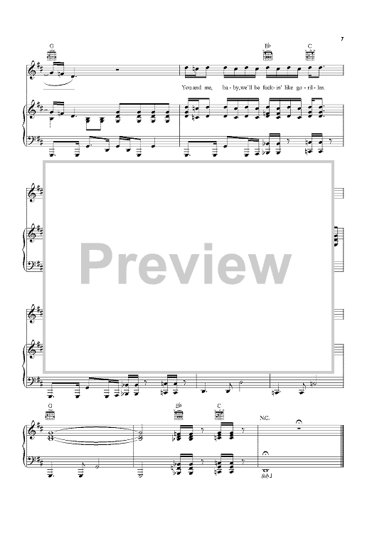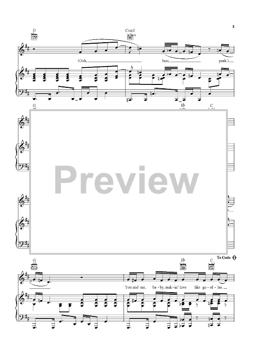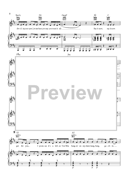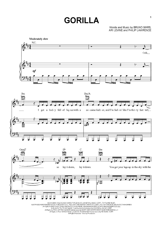 Digital Sheet Music for Gorilla by Ari Levine, Philip Lawrence, Bruno Mars scored for Piano/Vocal/Chords; id:437497