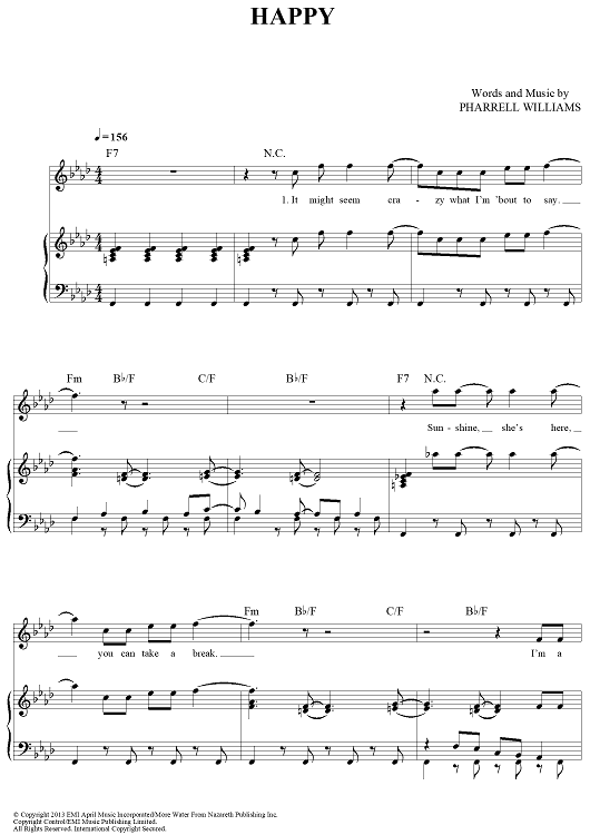 Digital Sheet Music for Happy by Pharrell Williams scored for Piano/Vocal/Chords; id:440855