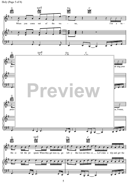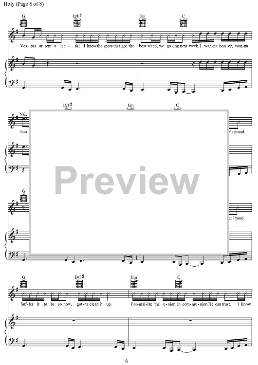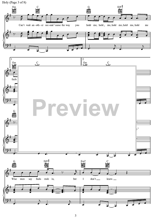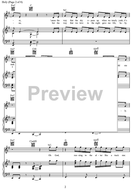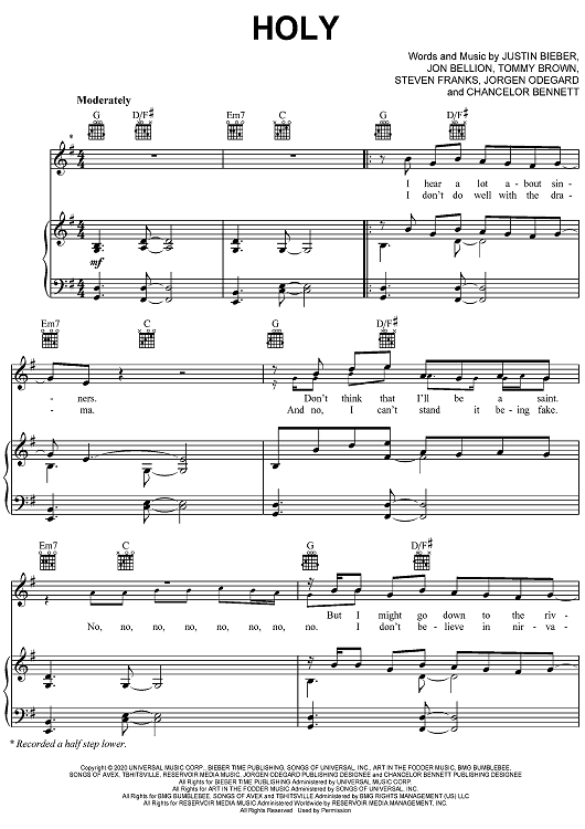 Digital Sheet Music for Holy by Justin Bieber, Tommy Brown, Jon Bellion, Chancellor Bennett, Jorgen Odegard, Steven Franks scored for Piano/Vocal/Chords; id:468540