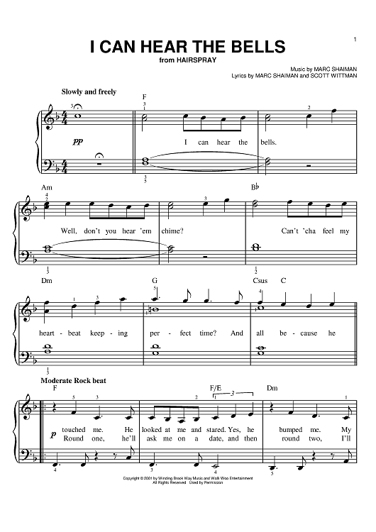 Digital Sheet Music for I Can Hear The Bells by Marc Shaiman, Scott Wittman scored for Easy Piano; id:372666