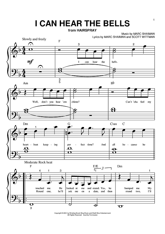 Digital Sheet Music for I Can Hear The Bells by Marc Shaiman, Scott Wittman scored for Big Note Piano; id:392214