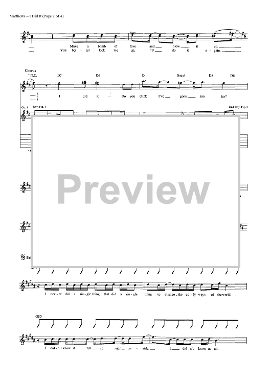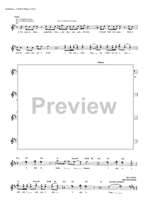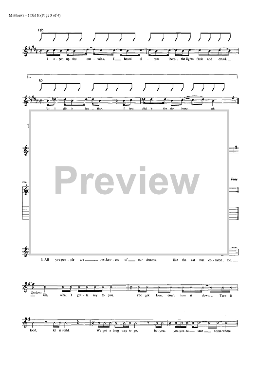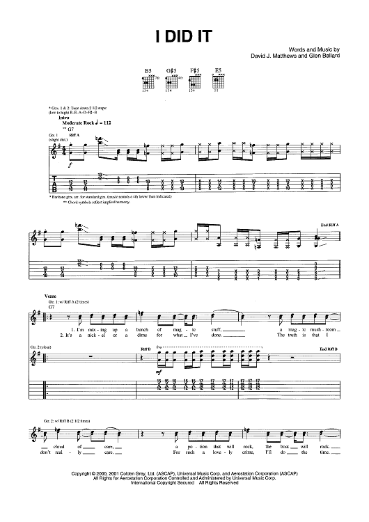Digital Sheet Music for I Did It by Glen Ballard, Dave Matthews Band, Dave Matthews scored for Guitar Tab/Vocal; id:448272