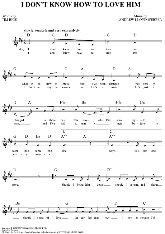 "I Don't Know How To Love Him" Sheet Music by Andrew Lloyd Webber