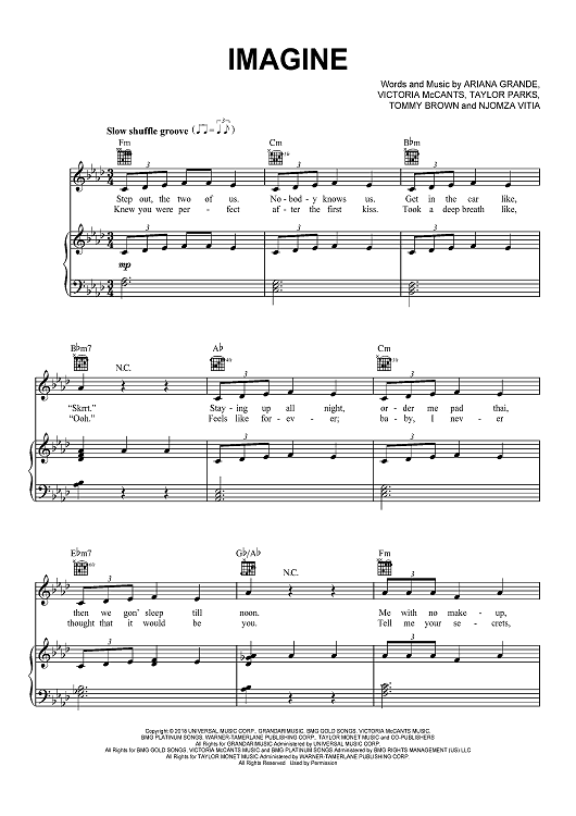 Digital Sheet Music for Imagine by Ariana Grande, Victoria McCants, Taylor Parks, Tommy Brown, Njomza Vitia scored for Piano/Vocal/Chords; id:467153