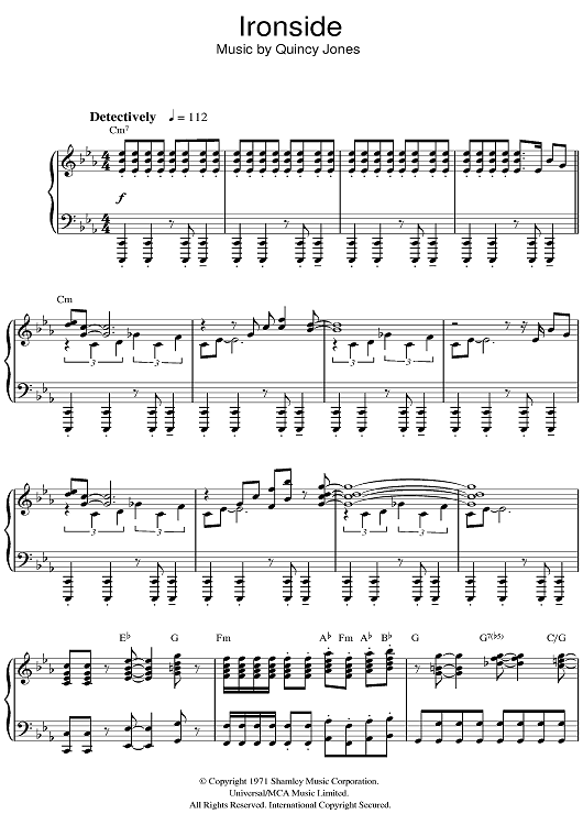 Digital Sheet Music for Ironside by Quincy Jones scored for Piano; id:384848