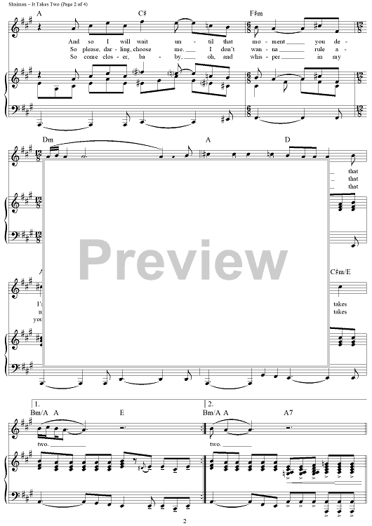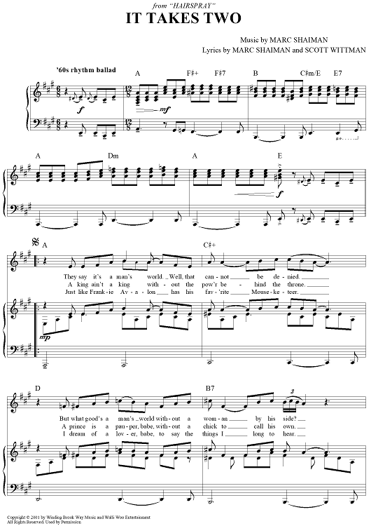 Digital Sheet Music for It Takes Two by Marc Shaiman, Scott Wittman scored for Piano/Vocal/Chords; id:363079