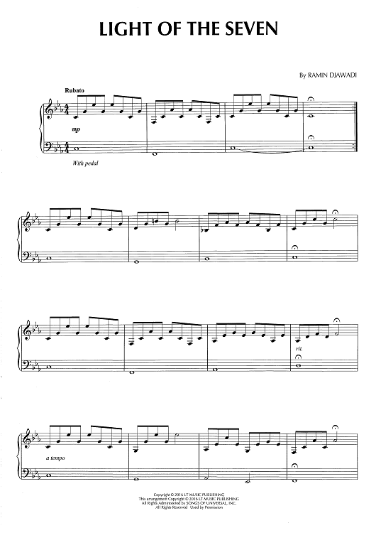"Light Of The Seven" Sheet Music by Ramin Djawadi