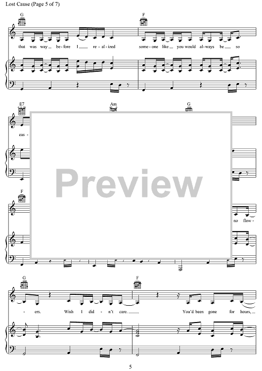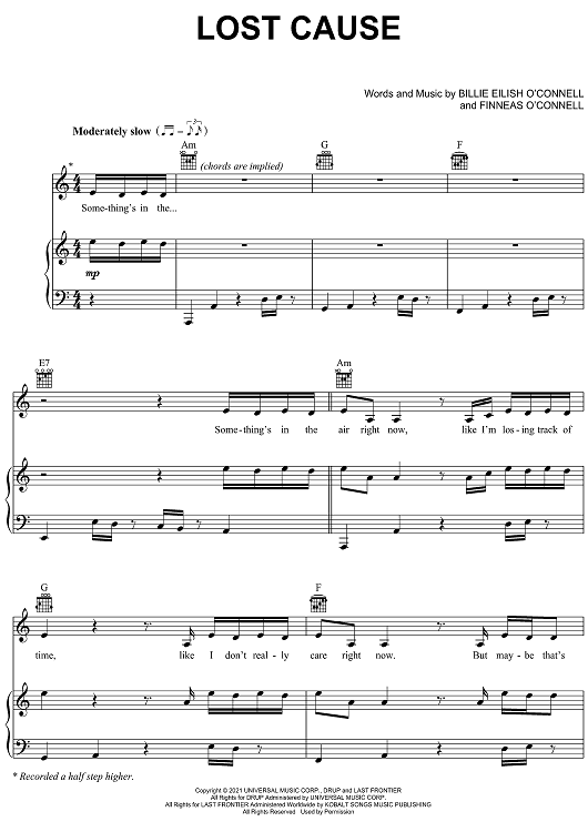 Digital Sheet Music for Lost Cause by Billie Eilish, Finneas O'Connell scored for Piano/Vocal/Chords; id:469338