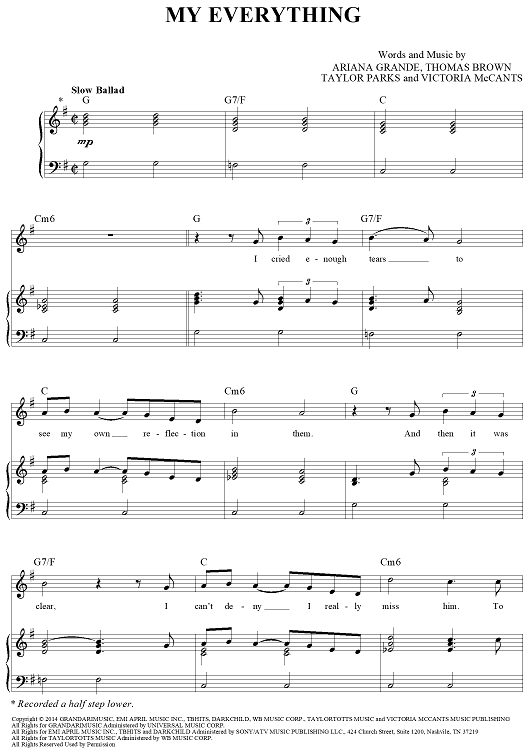 Digital Sheet Music for My Everything by Ariana Grande, Victoria McCants, Taylor Parks, Tommy Brown scored for Piano/Vocal/Chords; id:457417