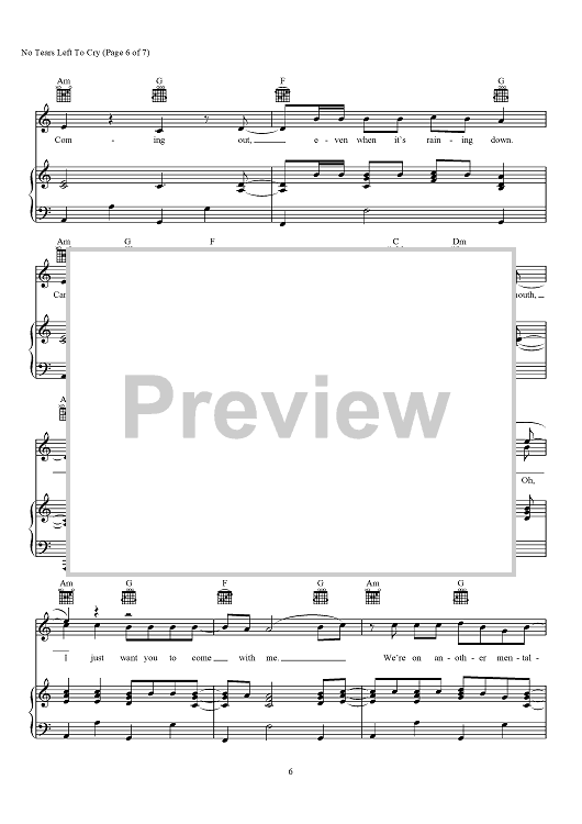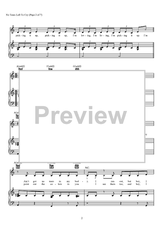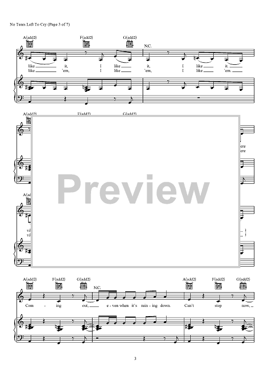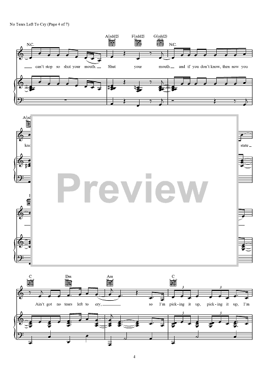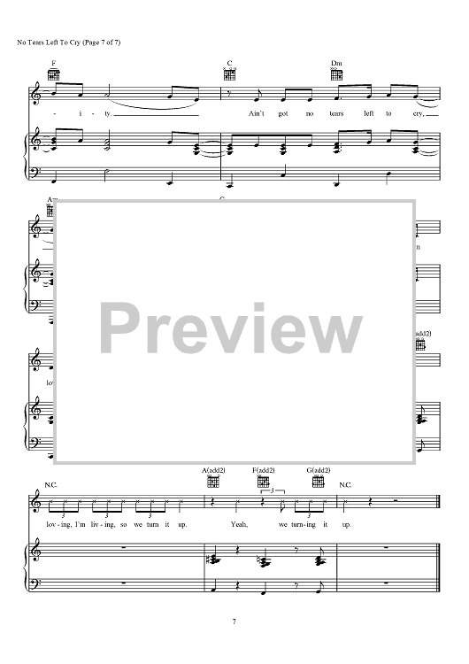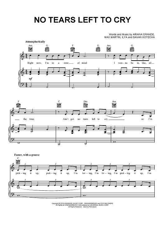 Digital Sheet Music for No Tears Left To Cry by Max Martin, Savan Kotecha, Ariana Grande, Ilya scored for Piano/Vocal/Chords; id:466368