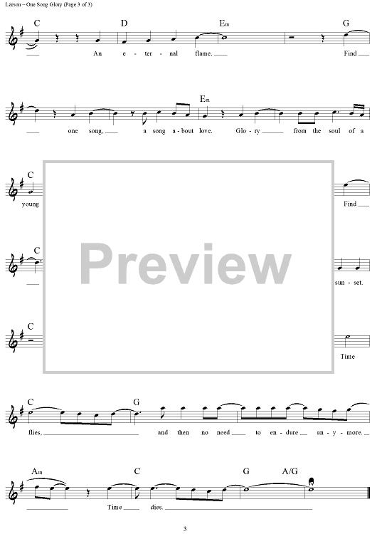 Digital Sheet Music for One Song Glory by Jonathan Larson scored for Lead Sheet; id:457189