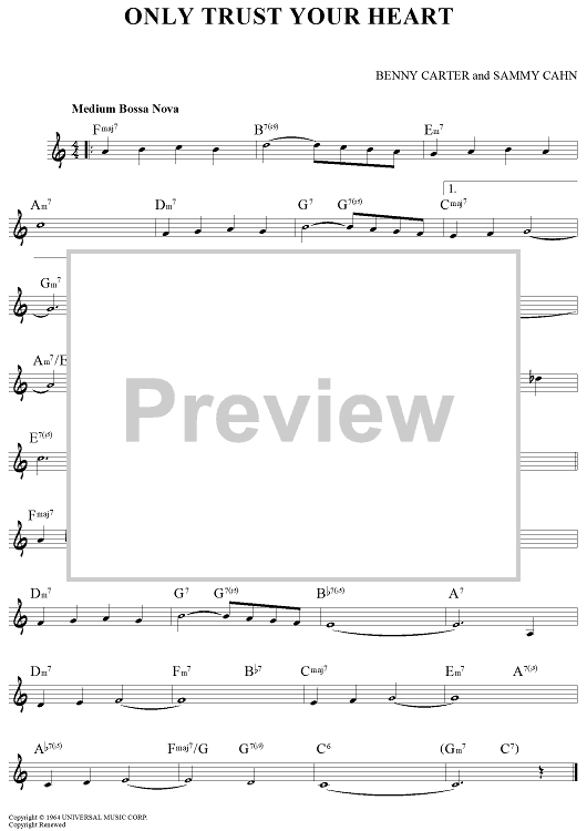 Digital Sheet Music for Only Trust Your Heart by Sammy Cahn, Benny Carter scored for Lead Sheet; id:456465