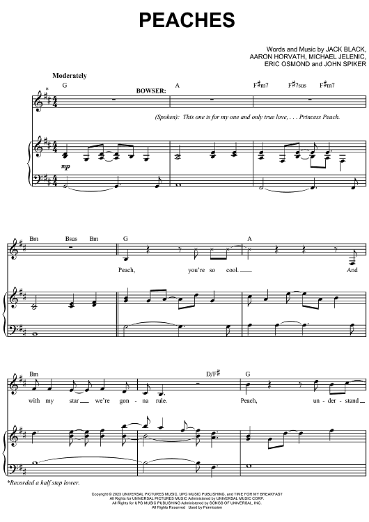 Digital Sheet Music for Peaches by Jack Black, John Spiker, Michael Jelenic, Aaron Horvath, Eric Osmond scored for Piano/Vocal/Chords; id:500131