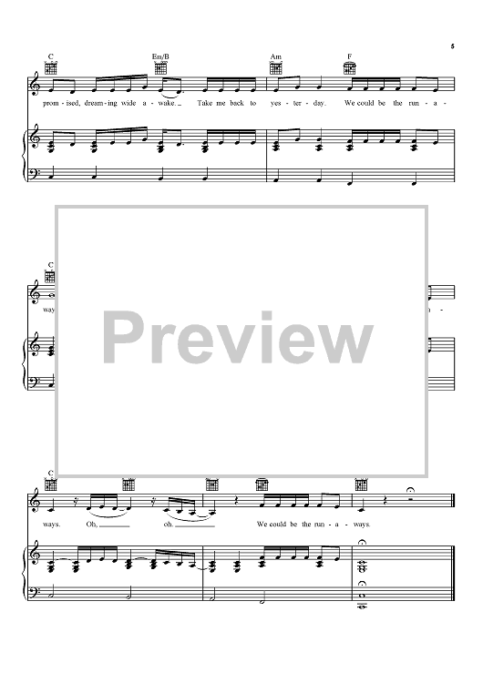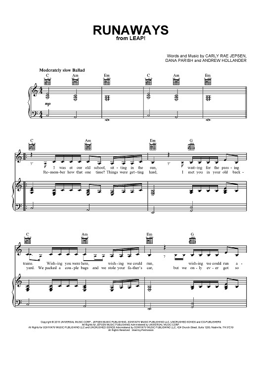 Digital Sheet Music for Runaways - from Leap! by Carly Rae Jepsen, Dana Parish, Andrew Hollander scored for Piano/Vocal/Chords; id:465696