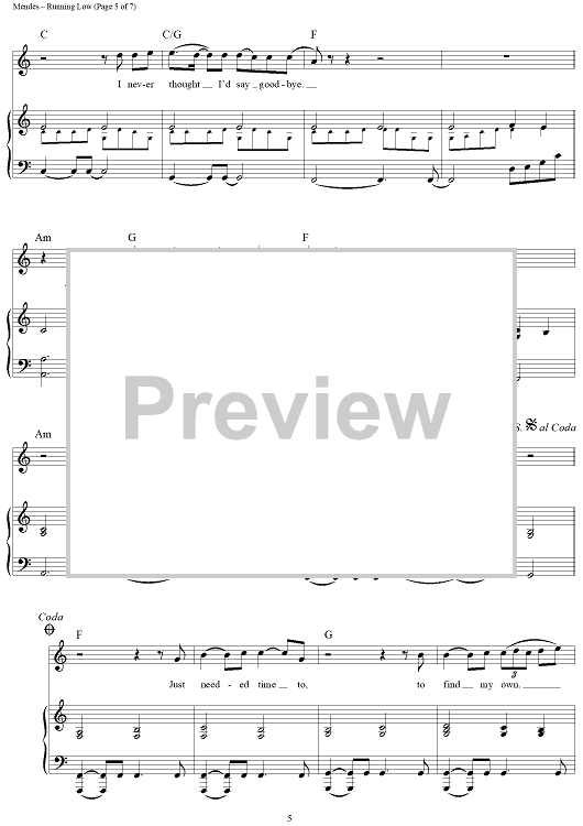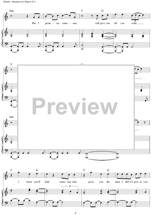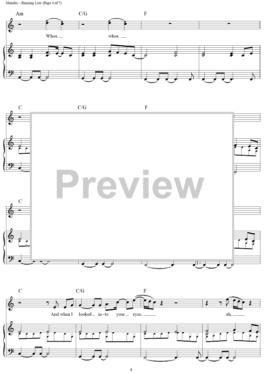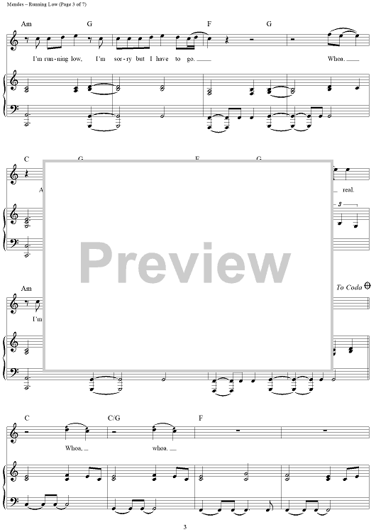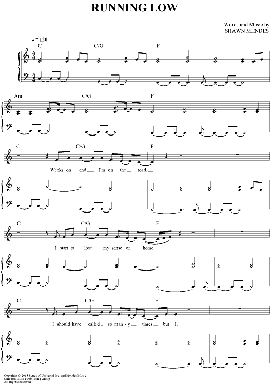 Digital Sheet Music for Running Low by Shawn Mendes scored for Piano/Vocal/Chords; id:456298