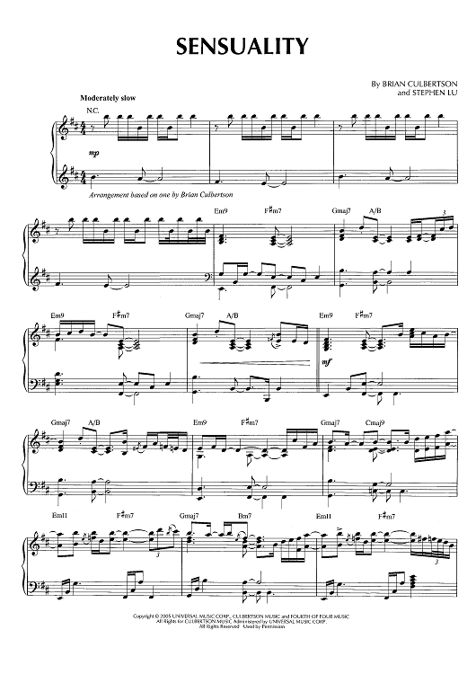 Digital Sheet Music for Sensuality by Brian Culbertson, Brent Edstrom, Stephen Lu scored for Piano Solo; id:466286