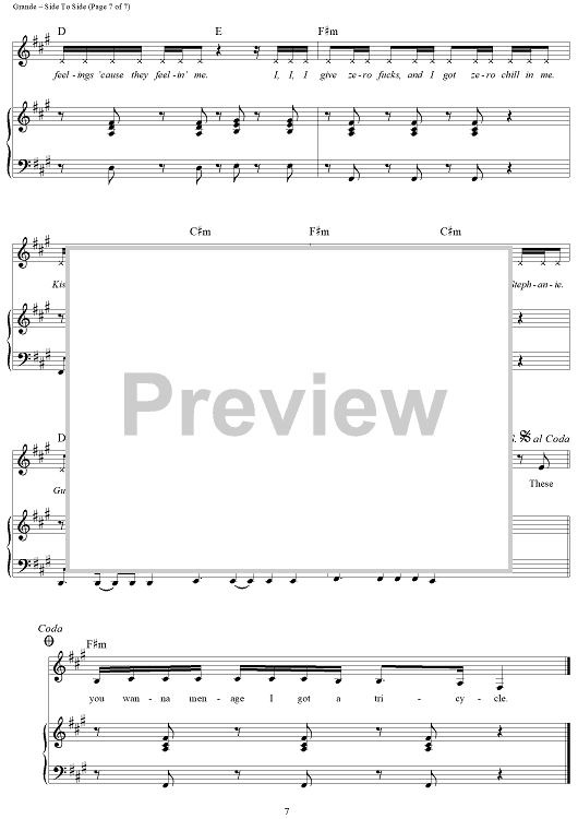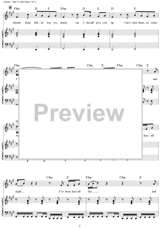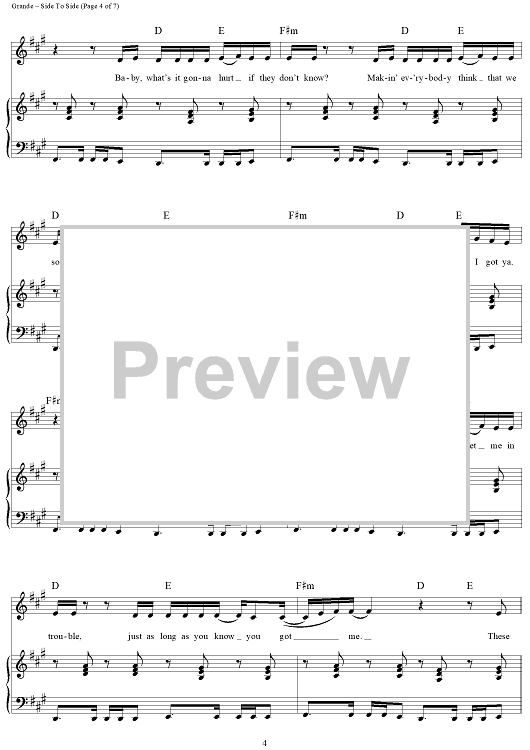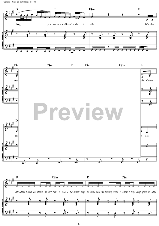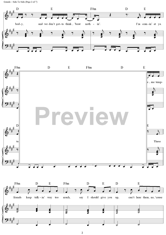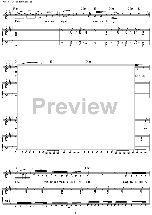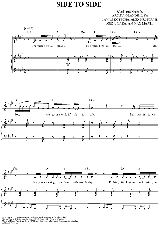 Digital Sheet Music for Side To Side by Max Martin, Alexander Kronlund, Savan Kotecha, Onika Maraj, Ariana Grande, Ilya scored for Piano/Vocal/Chords; id:462436