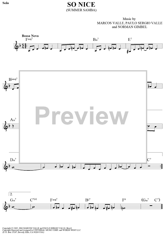 Digital Sheet Music for So Nice (Summer Samba) by Norman Gimbel, Marcos Valle, Paulo Sergio Valle scored for Lead Sheet; id:456808